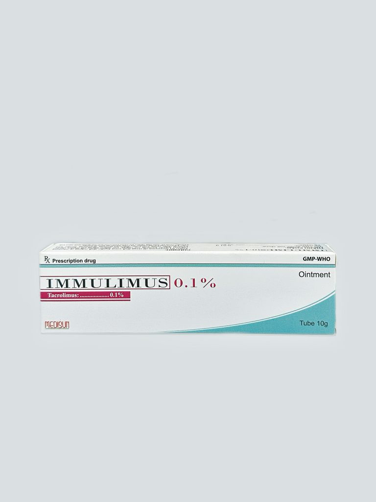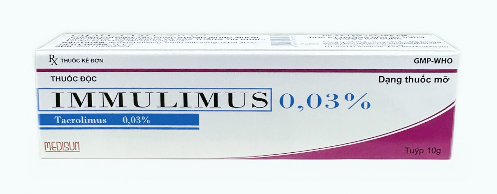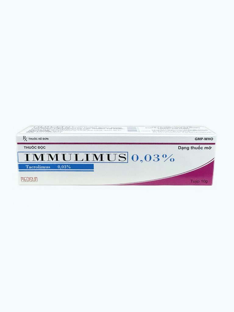 Thông tin về Immulimus 0.03% I. Thông tin sản phẩm Tên thuốc: Immulimus 0.03% Hoạt chất: Tacrolimus 0.03% Dạng bào chế: Thuốc mỡ Đóng gói: Hộp