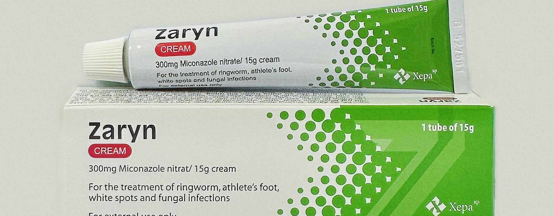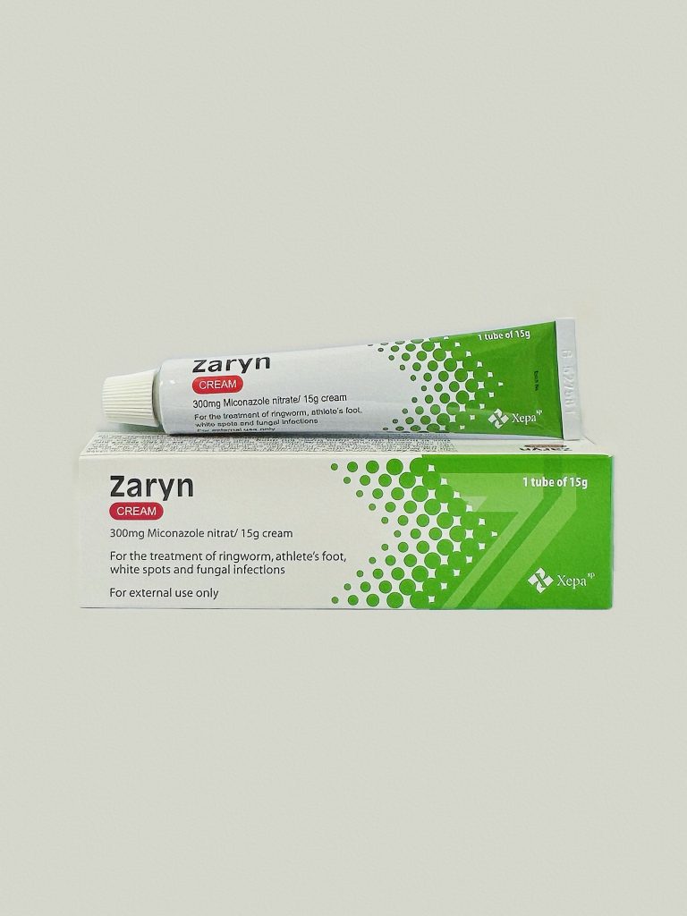 Thông tin về thuốc Zaryn I. Thông tin sản phẩm: Tên thuốc: Zaryn Hoạt chất: Miconazol nitrat 300mg/15g (tương đương 2%). Dạng bào chế: Kem bôi